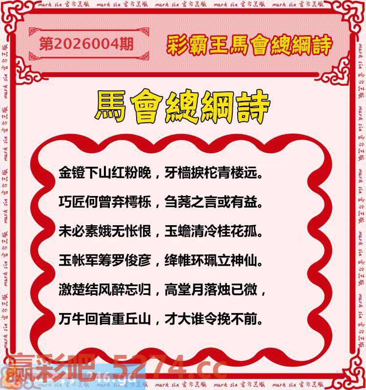 004期:彩霸王馬会总纲诗
